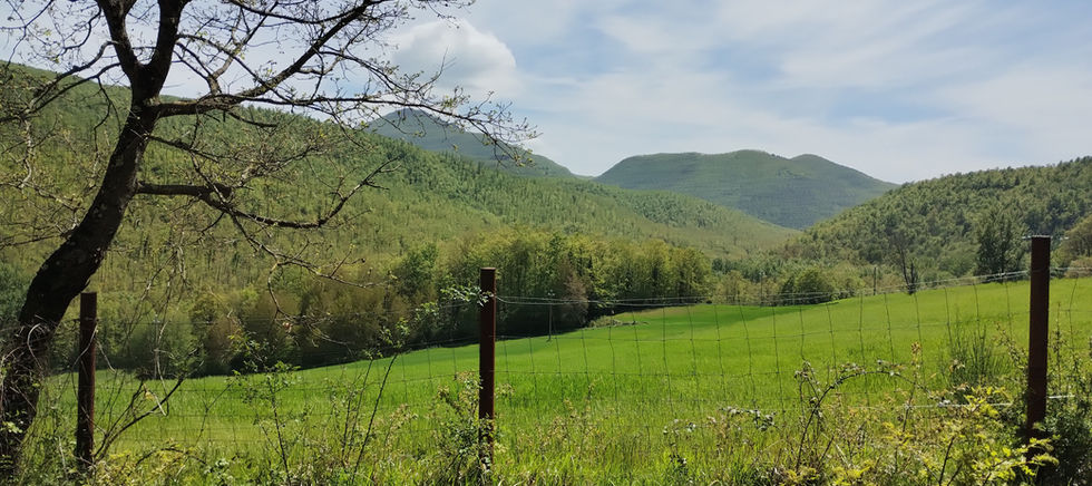 Raggiungeremo poi una più ampia strada di crinale con un affaccio verso i monti della costa etrusca. Contineremo l'ascesa fino all'Aia dei Diavoli e scopriremo la leggenda che ha dato il nome a questa località. Siamo nel punto più alto dell'escursione e da qui cominceremo a scendere di quota sempre immersi nei castagneti, stavolta del versante opposto all'ascesa. Ne attraverseremo alcuni davvero ben curati fino a raggiungere un'area di sosta con tavoli per il nostro break pranzo condiviso. Imbracciati di nuovo gli zaini, continueremo a scendere di quota fino a raggiungere il fondo valle e costeggiare il torrente Pavone.