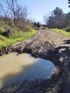 Ripresa la via Francigena lasciata per un buon tratto e fatto un break pranzo al solicchio di questo strambo gennaio, il nostro trekking prosegue su quote più alte che permettono di ammirare ampi panorami dalla val d'Arno alla val d'Elsa. Il passo è ottimo e arriviamo alla Pieve di Coiano nel primo pomeriggio.