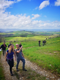 Il trekking comincia da Iano, una borgata di antiche origini, frazione di Montaione. Al bar di Alessia, che fa anche da alimentari del paese, prendiamo un caffè e fatto un "briefing" iniziale ci mettiamo in cammino. La prima parte dell’escursione ci porta a esplorare le colline plioceniche che in tempi remoti hanno ospitato il mare che si estendeva fino a questa parte interna della Toscana.