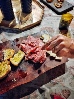 Arriviamo poi al rifugio della Castellina nel primo pomeriggio. Damiano e Irene ci accolgono in maniera calorosa, il camino acceso, il tavolo già preparato con formaggi, finocchiona, buon vino e i necci in preparazione sul fornello ci scaldano i sensi dopo una giornata decisamente fresca.