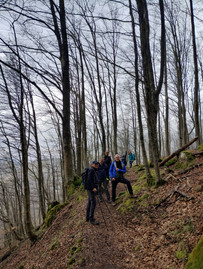 La vigorosa faggeta ci ricorda che abbiamo superato i 900 metri di quota e alcuni angoli di questa parte di foresta sono fiabeschi per il muschio sulle rocce, di un verde così acceso da colorare la giornata ancora nuvolosa.