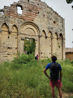 Risaliti sul crinale raggiungiamo i bellissimi resti della pieve di San Giovanni, la cui facciata ancora in piedi, mostra la sua bellezza a distanza di più di millennio.