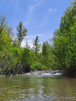 Arriviamo al torrente Pavone e ci rilassiamo qualche minuto lungo le sue sponde, il sole è alto in cielo e i piedi a mollo non ci fanno che bene.